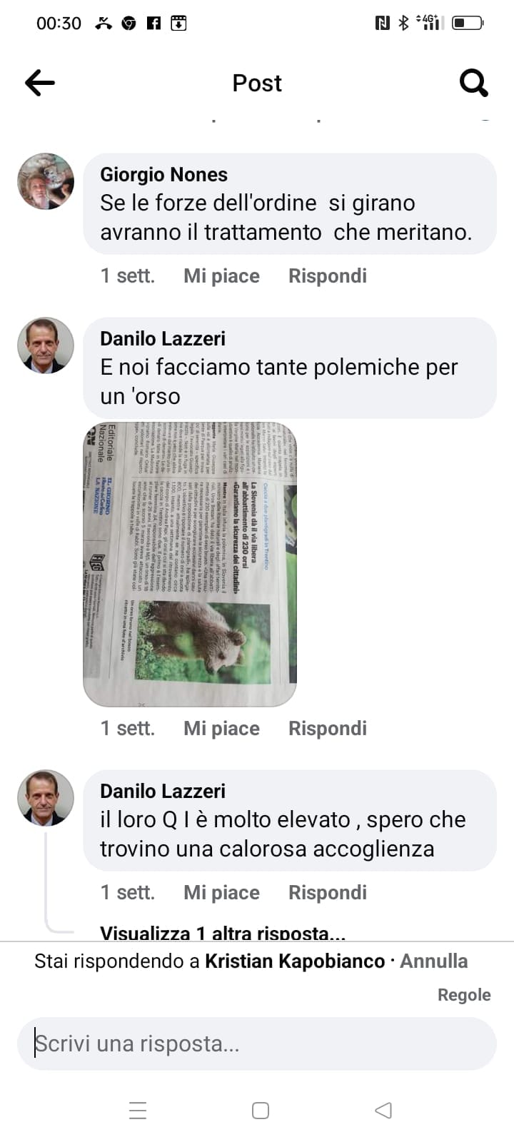 TRENTO (28 aprile 2023) "La decisione del presidente Fugstti di firmare la seconda ordinanza per l'abbattimento dell'orsa Gaia è un abominio amministrativo eìin dispregio di tutte le posizioni politiche a favore della salvezza dell'orsa a partire dai genitori del runner ucciso dall'orsa nel tentativo di difendere i propri cuccioli. La scelta del presidente della provincia di Trento di firmare la seconda ordinanza è chiaramente una mossa disperata di un uomo solo che vuole dimostrare quancosa al suo elettorato, Con tra la'ltro un atteggiamento da bastian contrario perchè pochi forse ricordano che Fugatti chiese le dimissioni dell'allora presidente Rossi quando fu ammazzata l'orsa Daniza, questo paragone crediamo che basti a raccontare la inoerenza di questo presidente nelle scelte politiche". Questo il comunicato dell'Associszone Italiana Difesa Animali ed Ambiente AIDAA a commento della decisione del presidente della provincia di Trento Maurizio Fugatti di firmare una nuova ordinanza per l'abbattimento dell'orsa Gaia.